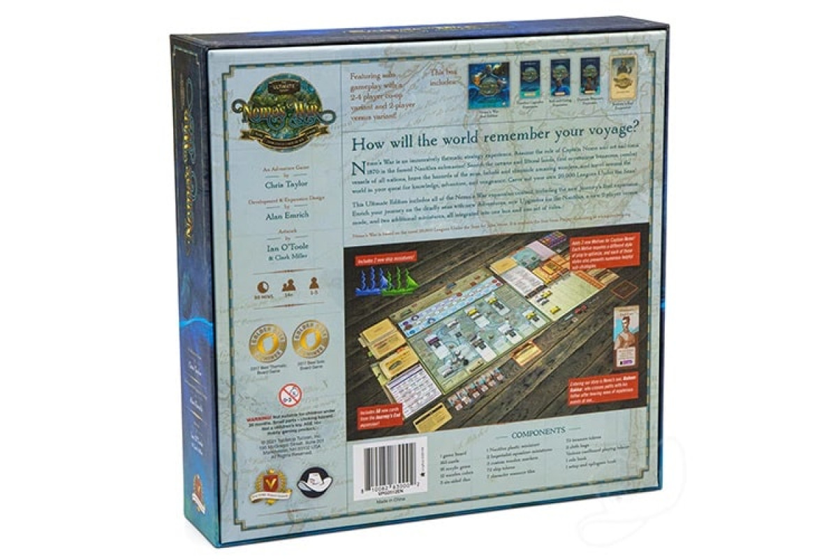 Nemo’s War: The Ultimate Edition is an adventure game of underwater exploration and combat in the Age of Imperialism, circa 1870. Play as Captain Nemo, the commander of the magnificent Nautilus, or as his numerous Imperialist foes. Brave the hazards of the deep, find mysterious treasures, combat vessels of all nations, chronicle amazing wonders, and travel the globe for knowledge and vengeance--your quest knows no bounds. Combining the base game and all expansion content, experience everything Nemo’s War has to offer. Play solitaire, cooperatively, or competitively; the choice is yours!