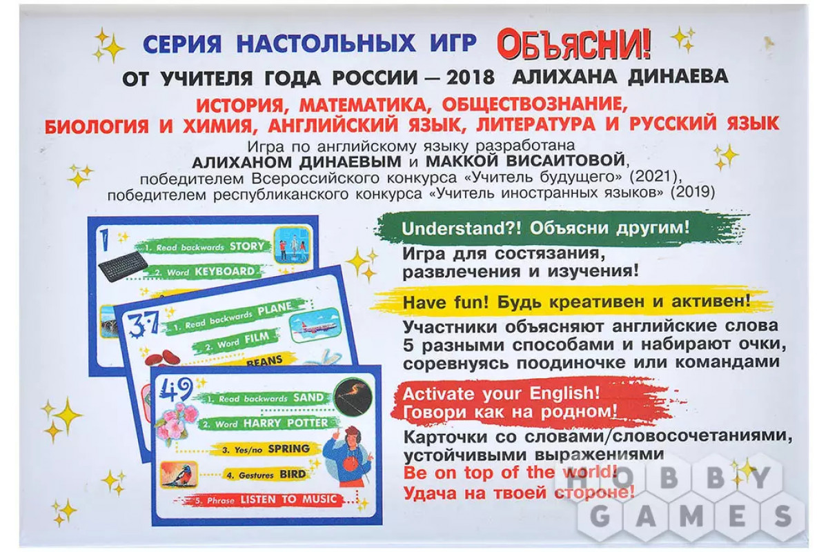 Если вы хотите прокачать свой английский в увлекательной форме, обратите внимание на игру с говорящим названием – "Объясни!". Это не просто очередная забава для вечеринки, а настоящая авторская разработка титанов педагогического мастерства.