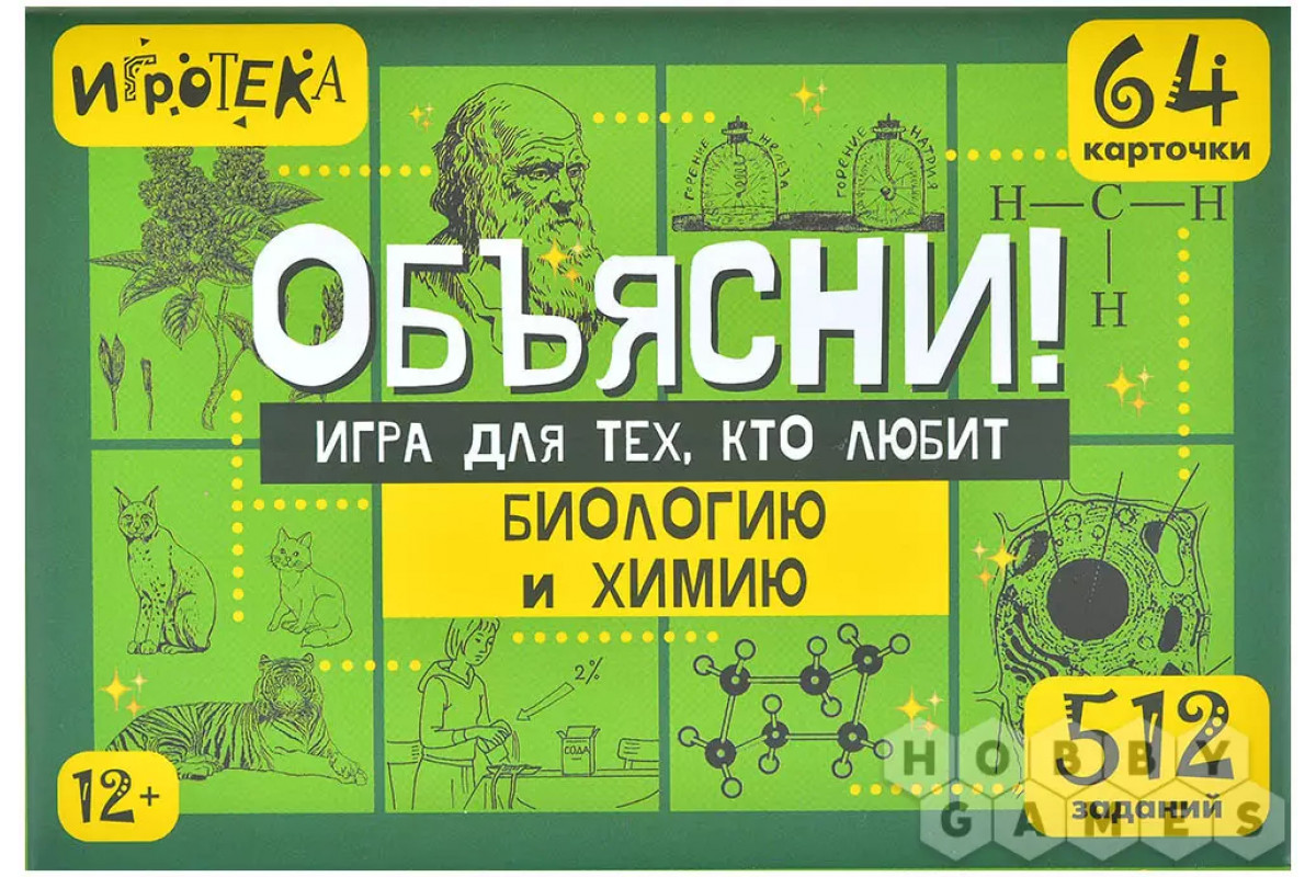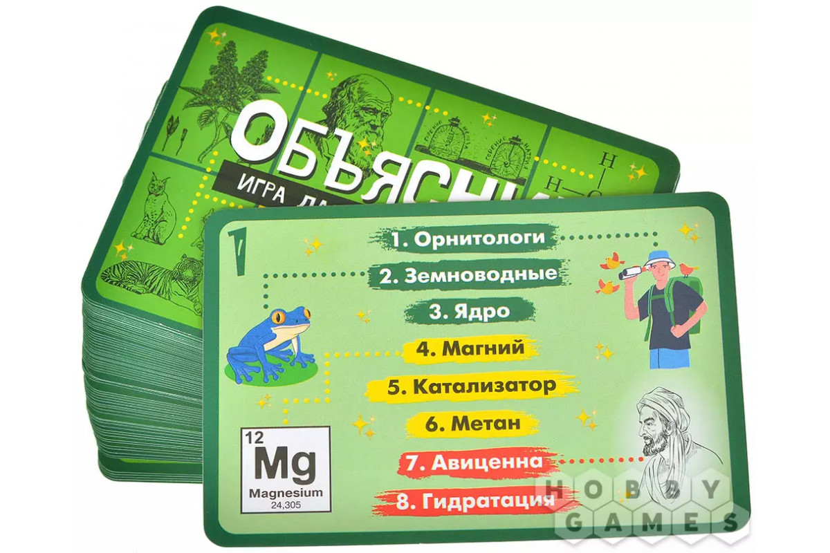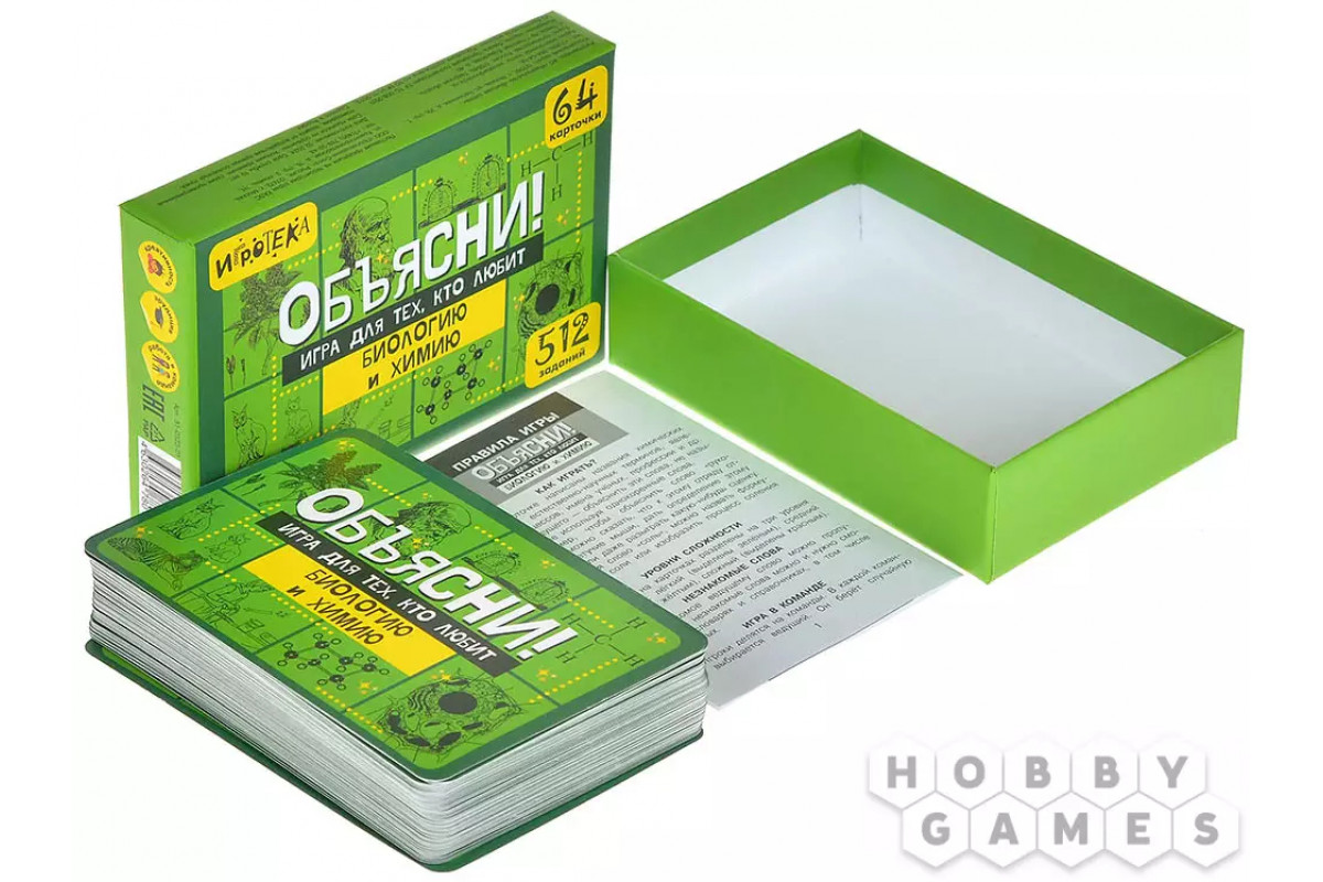 В комплекте вас ждут 64 карточки, которые превратят вечер в увлекательное научное шоу. На них собраны самые разные понятия из мира естественных наук: от сложных терминов и природных явлений до названий химических элементов и имён великих учёных, изменивших мир. Чтобы игра была комфортной для всех участников, все слова и термины разделены на три уровня сложности.