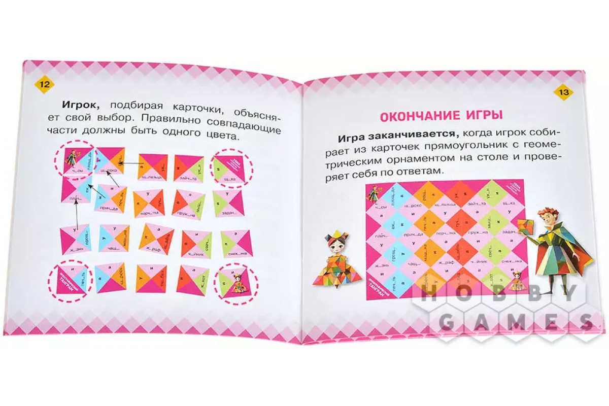 Ваша цель – собрать цельный прямоугольник с красивым геометрическим узором. Для этого нужно выбирать нужную тему в зависимости от возраста или текущей школьной программы – и смело приступать к игре. Рассматривайте карточки и подбирайте подходящие, ориентируясь на написанные слова, буквы и характеристики. В ход идут и ваши знания, и специальные цветовые подсказки. Наблюдайте за тем, как разрозненные фрагменты постепенно складываются в единую картину – это ли не магия?