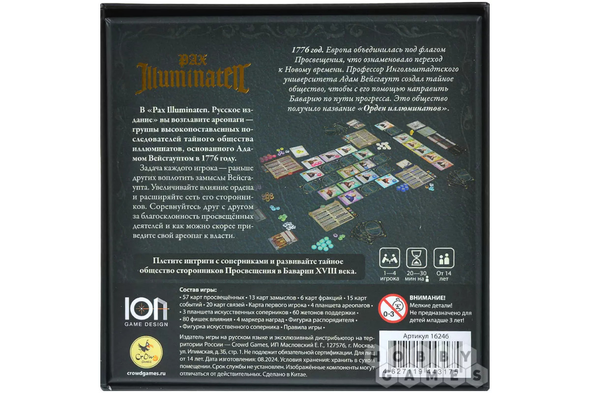 В хардкорной стратегии "Pax Illuminaten: Русское издание" вам предстоит встать во главе ареопага – тайной ячейки иллюминатов, борющейся за влияние в шести ключевых фракциях Баварии. Ваше оружие – не шпаги, а сети лояльности, вербовка ключевых персон и хитроумные комбинации из карт просвещённых. Механика игры сочетает контроль территорий, создание паттернов и управление ограниченными ресурсами, где каждое решение меняет баланс сил. Вам придётся балансировать между выполнением личных замыслов и противодействием соперникам, чьи планы столь же коварны, как и ваши. Уникальная система интерактивных решений и вариативные карты замыслов обеспечивают невероятную глубину и реиграбельность – каждая партия становится новой главой в тайной истории эпохи Просвещения.