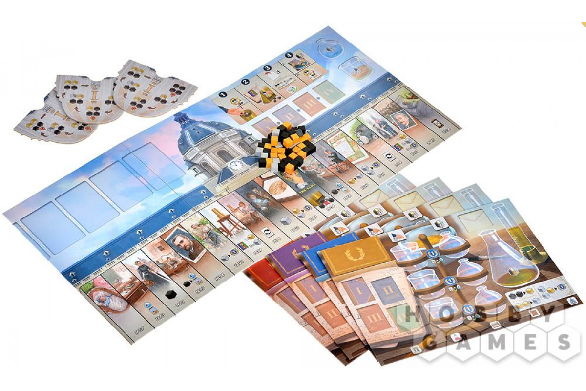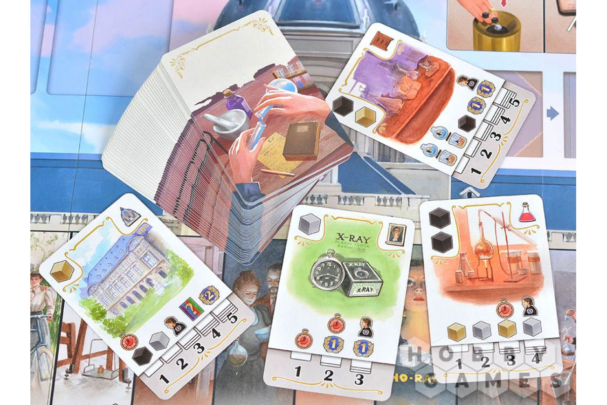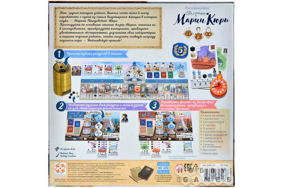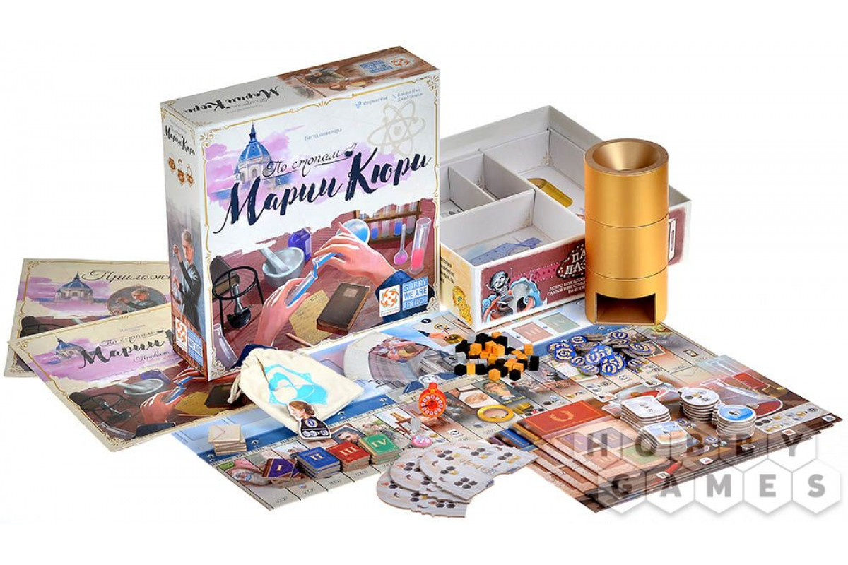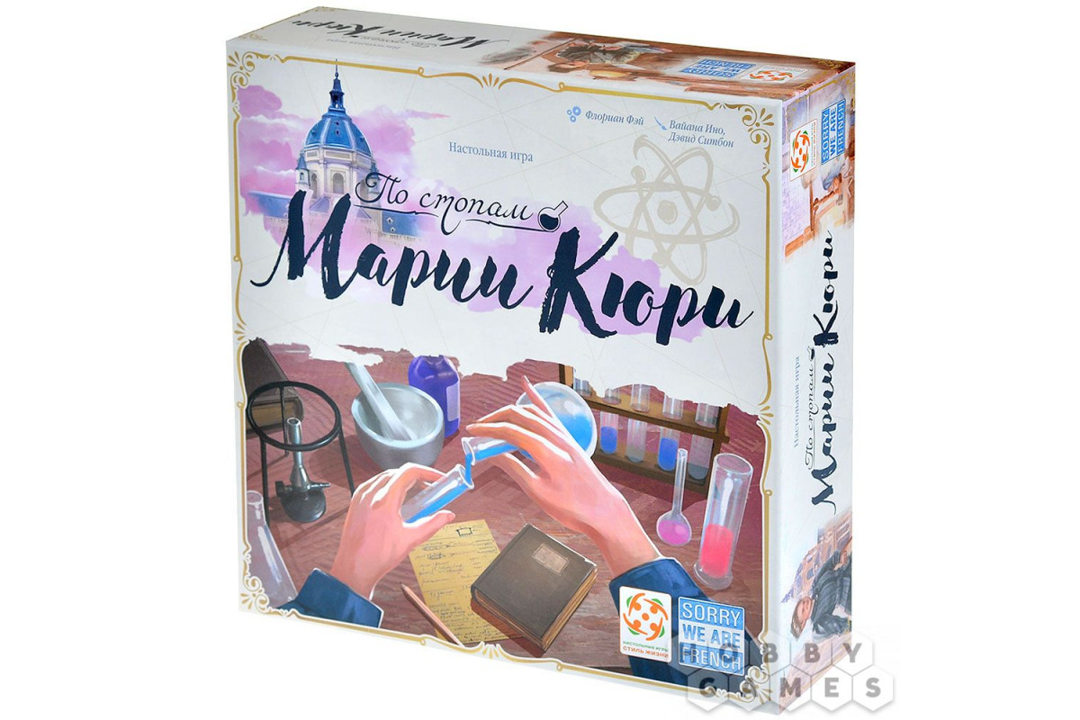 "По стопам Марии Кюри" – это увлекательная стратегическая настольная игра с историческим уклоном, идейное продолжение "", только теперь вам предстоит поработать бок о бок с легендарной исследовательницей Марией Кюри. Игра сочетает в себе атмосферу начала XX века, яркое оформление и познавательные факты из жизни учёной. Она понравится любителям продуманных, но доступных стратегий, поклонникам исторических сюжетов и тем, кто ценит настолки, объединяющие семью и друзей за одним столом. Каждая партия станет для вас и интеллектуальным вызовом, и возможностью прикоснуться к эпохе научных прорывов – идеальный микс для глубоких вечеров, проведённых в приятной компании!