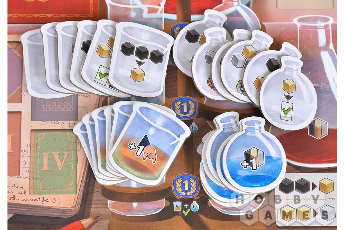 Заключительная стадия – . Просто проверьте, не превышен ли лимит хранения кубиков в колбе, и сбросьте лишние. Затем продвиньте маркер университета на одну ячейку вперёд, тем самым подготавливая игру к следующему ходу.