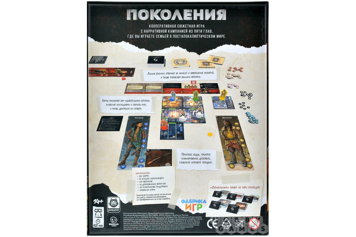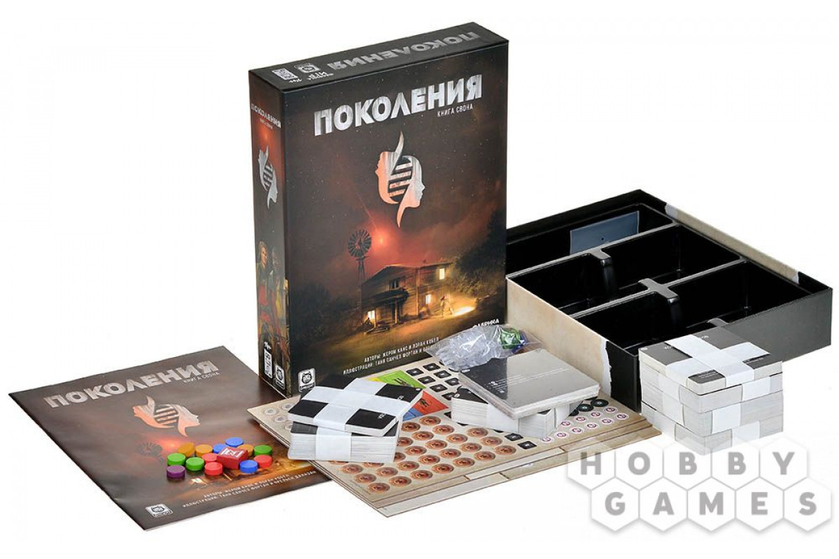 "Поколения: Книга Свона" – это кооперативная настольная игра, в которой вы становитесь частью семьи, борющейся за выживание в постапокалиптической реальности. Игра разделена на 5 глав, каждая из которых представлена своей колодой приключений. Внутри вас ожидают карты местности, персонажей и предметов, из которых складывается уникальное игровое поле. Также будьте готовы к сюжетным поворотам – куда без них!