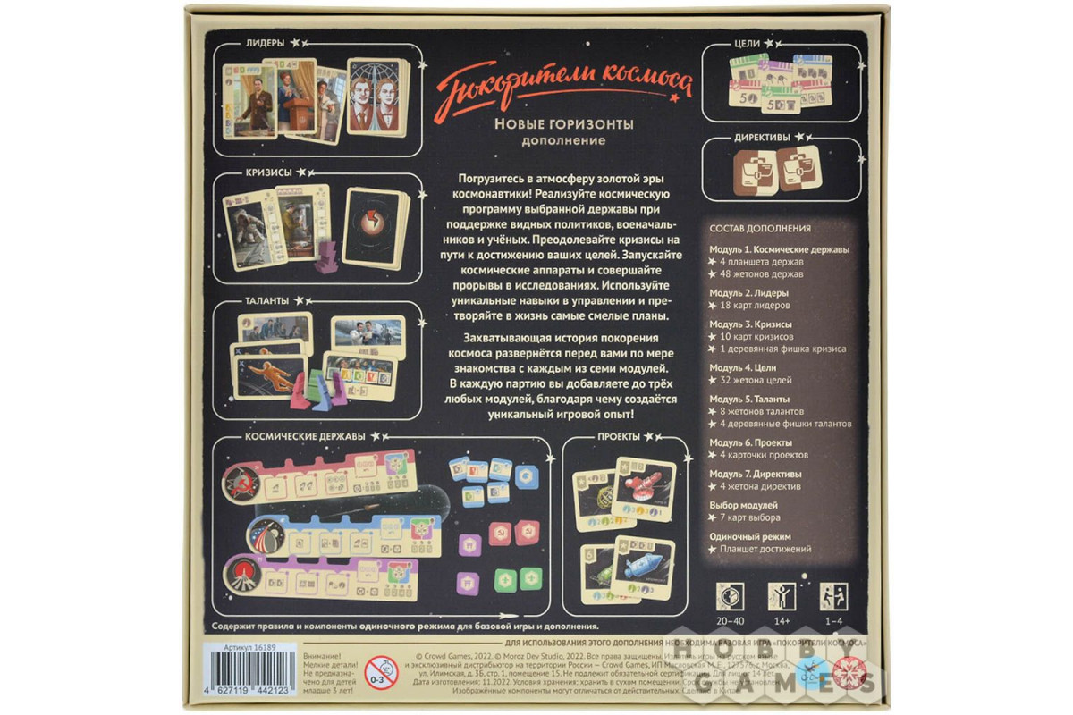 Дополнение "Новые горизонты" к игре "Покорители космоса" погрузит вас во времена, когда соперничество уступило место сотрудничеству, открыв путь к совместным миссиям и невероятным открытиям. В вашем распоряжении окажется 7 модулей, каждый из которых добавит в игру новые возможности – от совместных космических программ до прорывных технологий. Выбирайте любые три на партию, комбинируя их для уникального сценария, или доверьтесь картам выбора, чтобы испытать себя в непредсказуемых условиях. Освоив все модули, вы сможете создавать собственные комбинации, раскрывая новые стратегии и переигрывая ключевые моменты космической истории. Это дополнение идеально подойдёт тем, кто хочет глубже погрузиться в тактическое планирование, испытать новые механики взаимодействия и пережить дух эпохи, когда человечество сделало первый шаг к звёздам – вместе.