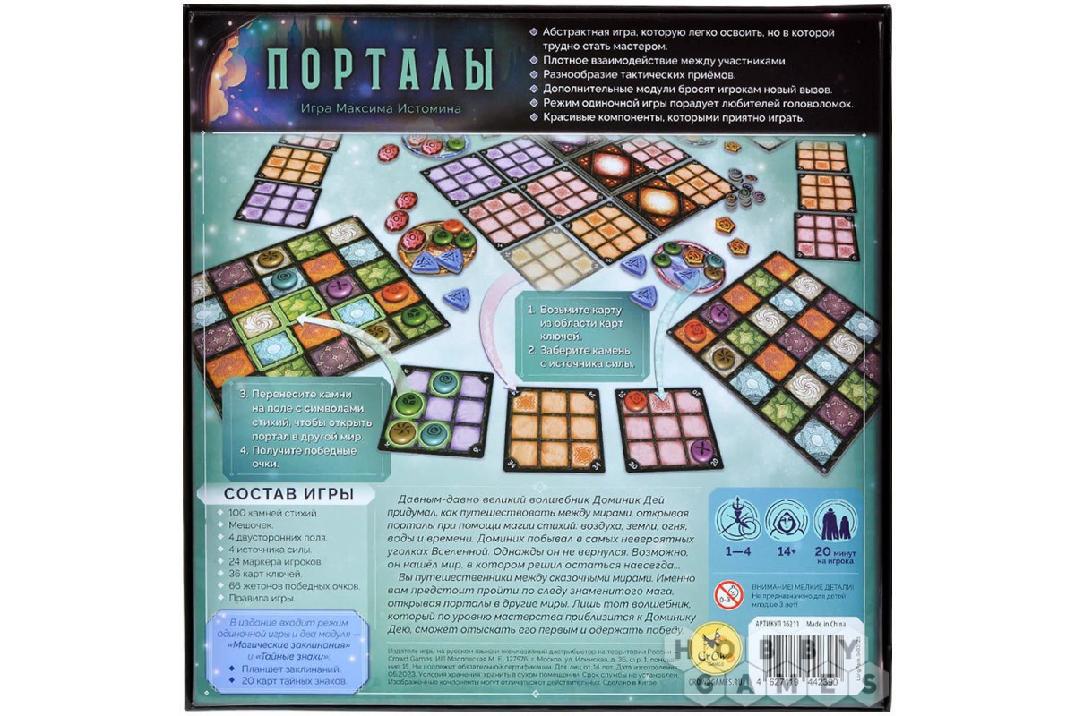 Абстрактная игра "Порталы" переносит вас в мир магии и стратегии, где каждый ход – это шаг к открытию новых измерений. Вы будете собирать магические ключи, заполняя их узоры камнями стихий, а затем размещать их на общих полях, чтобы активировать порталы. Но будьте осторожны: вас стремятся опередить соперники, и чтобы захватить нужные клетки первыми, придётся прибегнуть к хитрости и расчёту! Эта игра идеально подойдёт тем, кто любит тактические головоломки и красивые компоненты – камни стихий завораживают своей минималистичным, но ярким дизайном и тактильно приятны. В коробке вас ждут дополнительные модули и увлекательный одиночный режим, где предстоит сразиться с непростой, но захватывающей логической задачей.