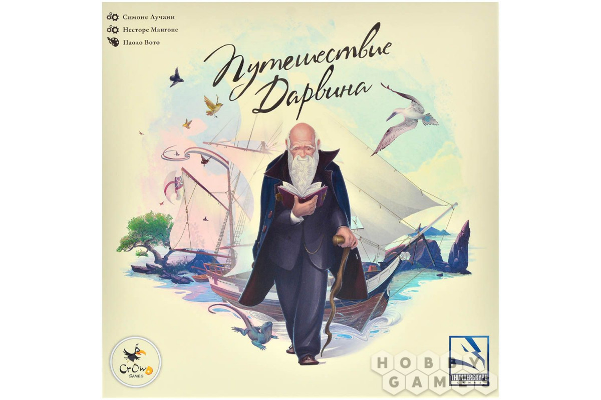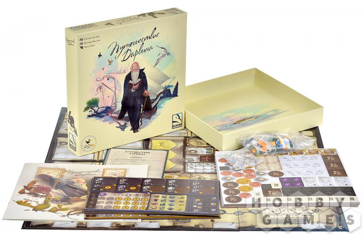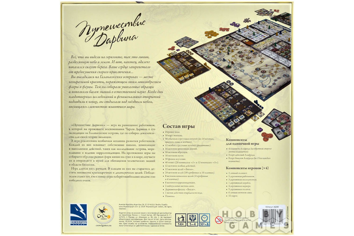 "Путешествие Дарвина" – стратегическая настольная игра для 1-4 участников, в которой вы управляете экспедицией, нанимаете ассистентов, исследуете регионы, собираете редкие образцы и создаёте научные труды. Механика построена на евро-принципах: менеджмент ресурсов, планирование действий и развитие собственной лаборатории. Ассистенты – зоологи, ботаники и другие специалисты – помогают вам открывать новые виды и продвигаться по следу Дарвина. Каждый ваш шаг приближает к победе, но и соперники не дремлют. Пути к успеху разнообразны – выбирайте стратегию, развивайте теории и наблюдайте, как маленькие детали складываются в великое открытие.