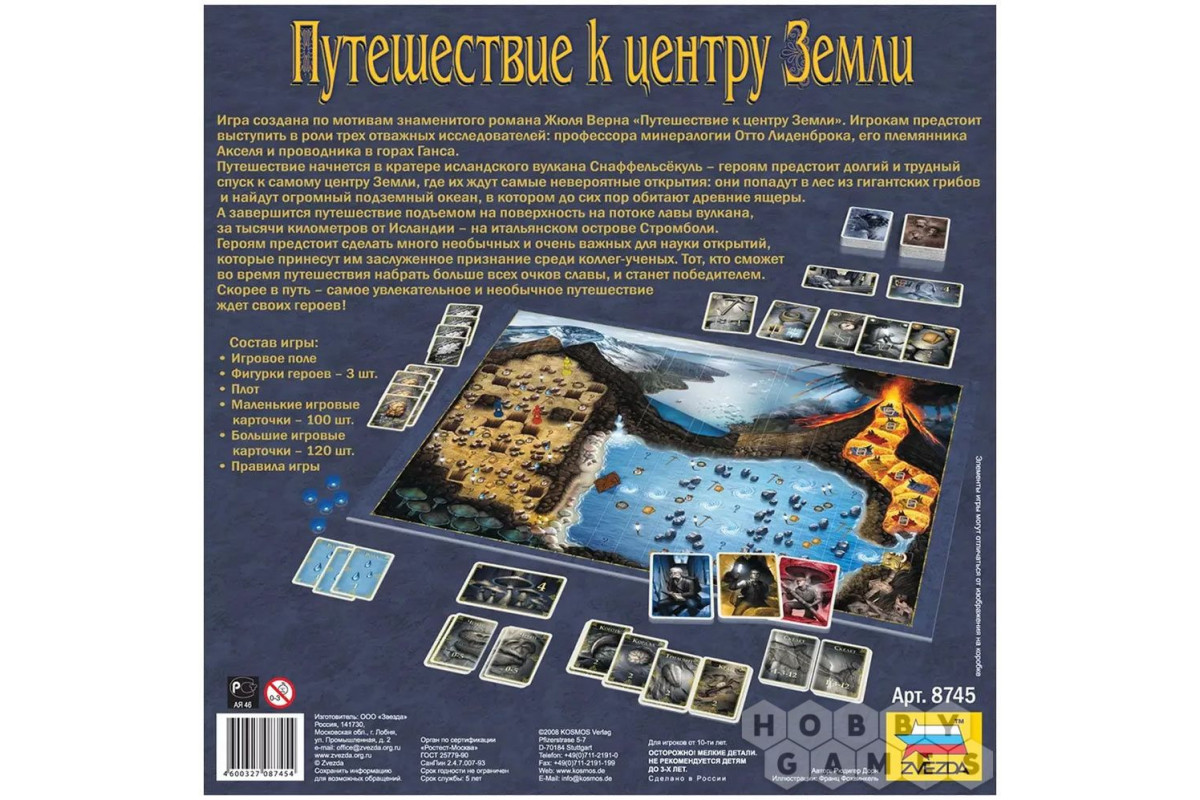"Путешествие к центру Земли" – это атмосферная настольная игра, вдохновлённая знаменитым и многими любимым романом Жюля Верна с аналогичным названием. Вас ждёт насыщенное приключение, полное неожиданных событий, открытий и впечатляющих находок. Игроки выступают в роли смелых исследователей, которые стремятся оставить след в истории и заработать как можно больше очков славы. Яркое оформление, качественные компоненты и многослойный сюжет делают каждую партию настоящим путешествием – вглубь, к сердцу планеты!