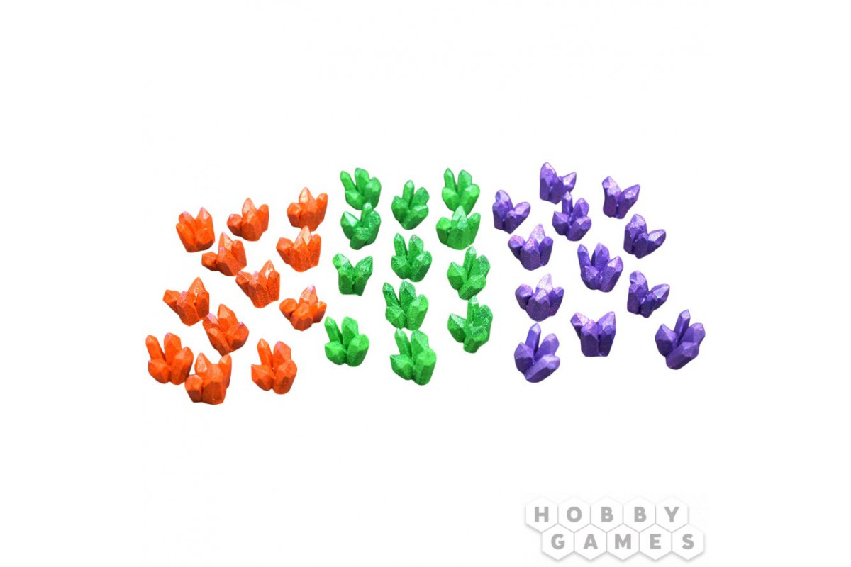 Набор из 36 прочных полиуретановых миниатюр заменит стандартные картонные жетоны, придав игре тактильное удовольствие и неповторимый шарм. Благодаря особой технологии покраски эти хрупкие на вид кристаллы не потеряют своего сияния даже после многих партий. Позвольте магии Лунных осколков раскрыть "Рёдзен" с новой, неожиданной стороны!