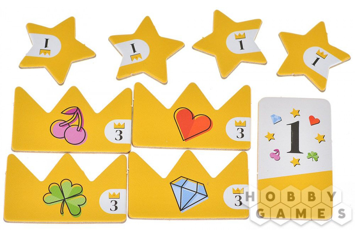Тот, чьи комбинации окажутся ценнее! Победные очки складываются из выполненных заданий, завоёванных корон и карт в стопке. Даже нетронутая звёздочка принесёт почётный балл. А если удача улыбнётся одинаково – победу решит стопка, где лежат ваши самые рискованные ходы. Соберите больше, сыграйте мудрее – и корона будет вашей!