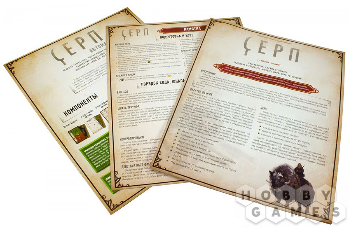 "Серп" однозначно заслуживает внимания ценителей стратегических игр, каждая партия заставит вас искать новый путь к победе исходя из стартовых условий и целей, а великолепные и неожиданные иллюстрации ещё долго будут всплывать в памяти игроков.