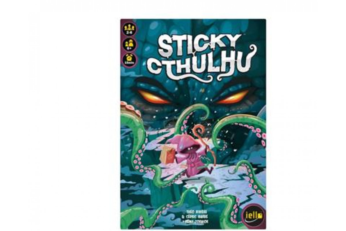 In Sticky Cthulhu, each player has a long sticky "tentacle", and the table is covered with six types of creature tiles in six colors, along with a few investigator tokens.