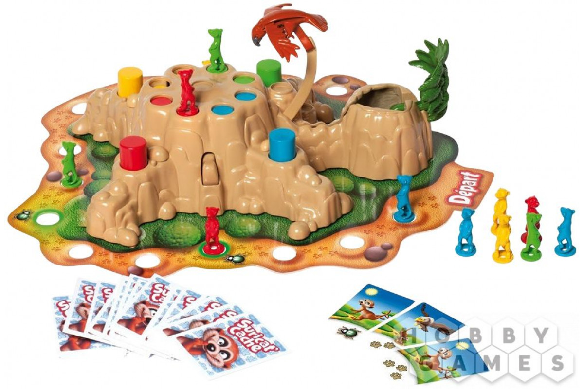 Каждый участник получает трёх очаровательных сурикатов своего цвета. По ходу игры вы будете вытягивать карты, указывающие, на сколько шагов могут продвинуться ваши подопечные. Но будьте внимательны: в любой момент отважных путешественников может накрыть тень орлиных крыльев – и тогда нужно обязательно успеть нажать на кнопку нужного цвета, чтобы спрятать зверьков! Малейшая задержка – и провинившийся сурикат отправится в начало пути, потеряв все достигнутые успехи.
