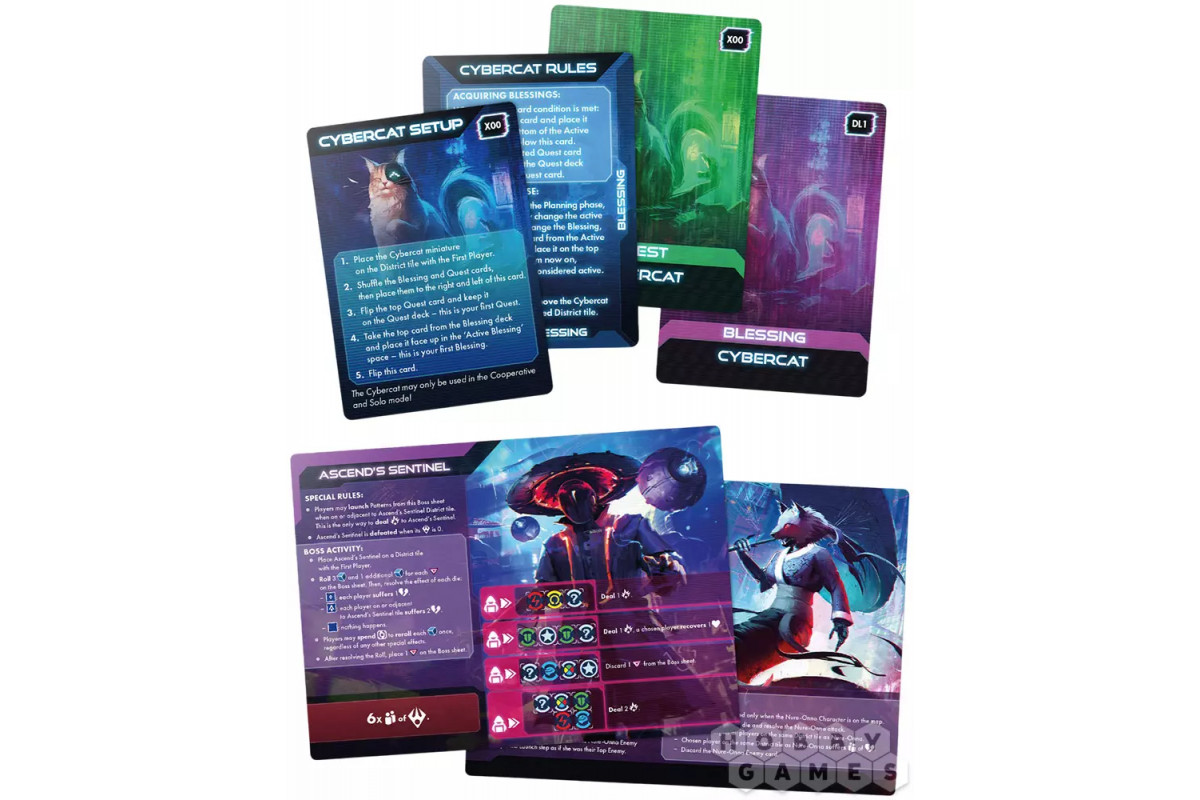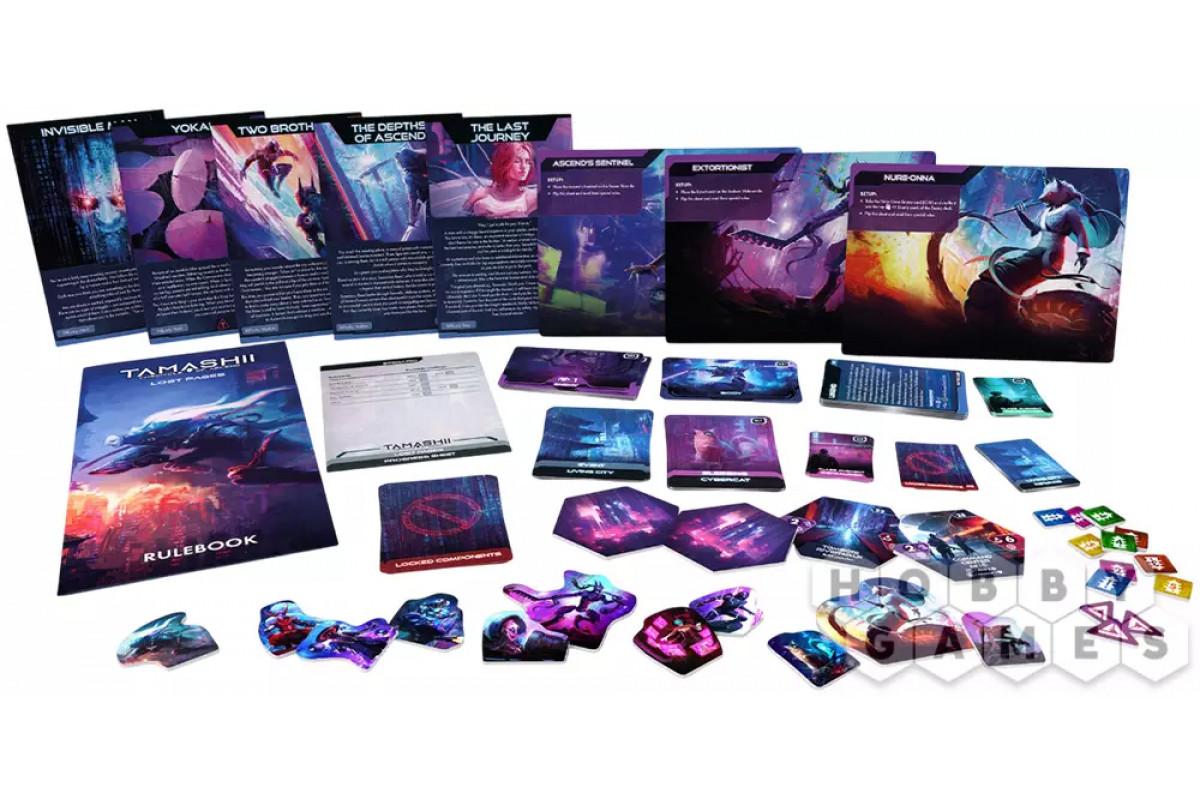 Tamashii: Chronicle of Ascend – киберпанковая приключенческая настольная игра, в которой вы будете исследовать модульный город, открывать локации, сражаться с врагами и собирать информацию, необходимую для победы. Параллельно вы действуете в виртуальной сети, где правильная комбинация ходов способна принести решающее преимущество. Сценарии игры меняют правила: вы можете объединиться с другими игроками, действовать против них или заключать шаткие союзы. Здесь нет постоянных сторон – только цели и пути к ним.