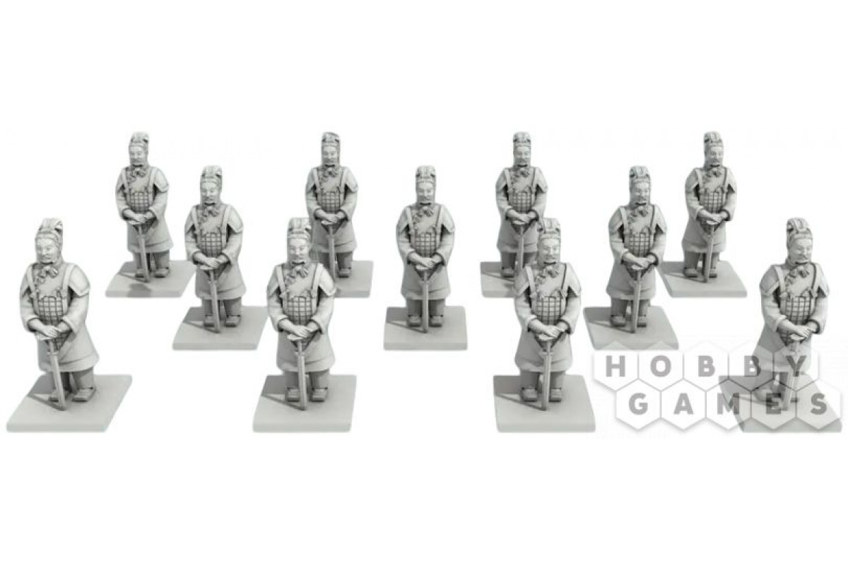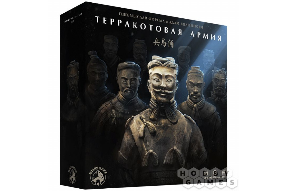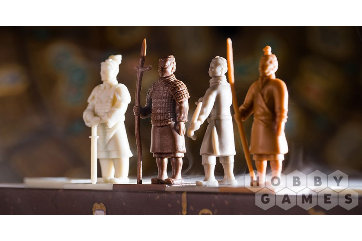 "Терракотовая армия" – настольная игра, сочетающая в себе элементы стратегии, планирования и тактического мышления. Вы берёте на себя роль мастеров, которые собирают ресурсы – глину и монеты, улучшают своих рабочих и размещают статуи воинов в мавзолее. Каждая фигурка – от могучего офицера до ловкого арбалетчика – обладает уникальными способностями, которые можно активировать с помощью специальных жетонов оружия. Игровое поле вращается благодаря дискам действий, добавляя динамику и неожиданные повороты. Ваша цель – набрать как можно больше победных очков, формируя группы воителей, используя знания мудрых советников и контролируя инспекторов.