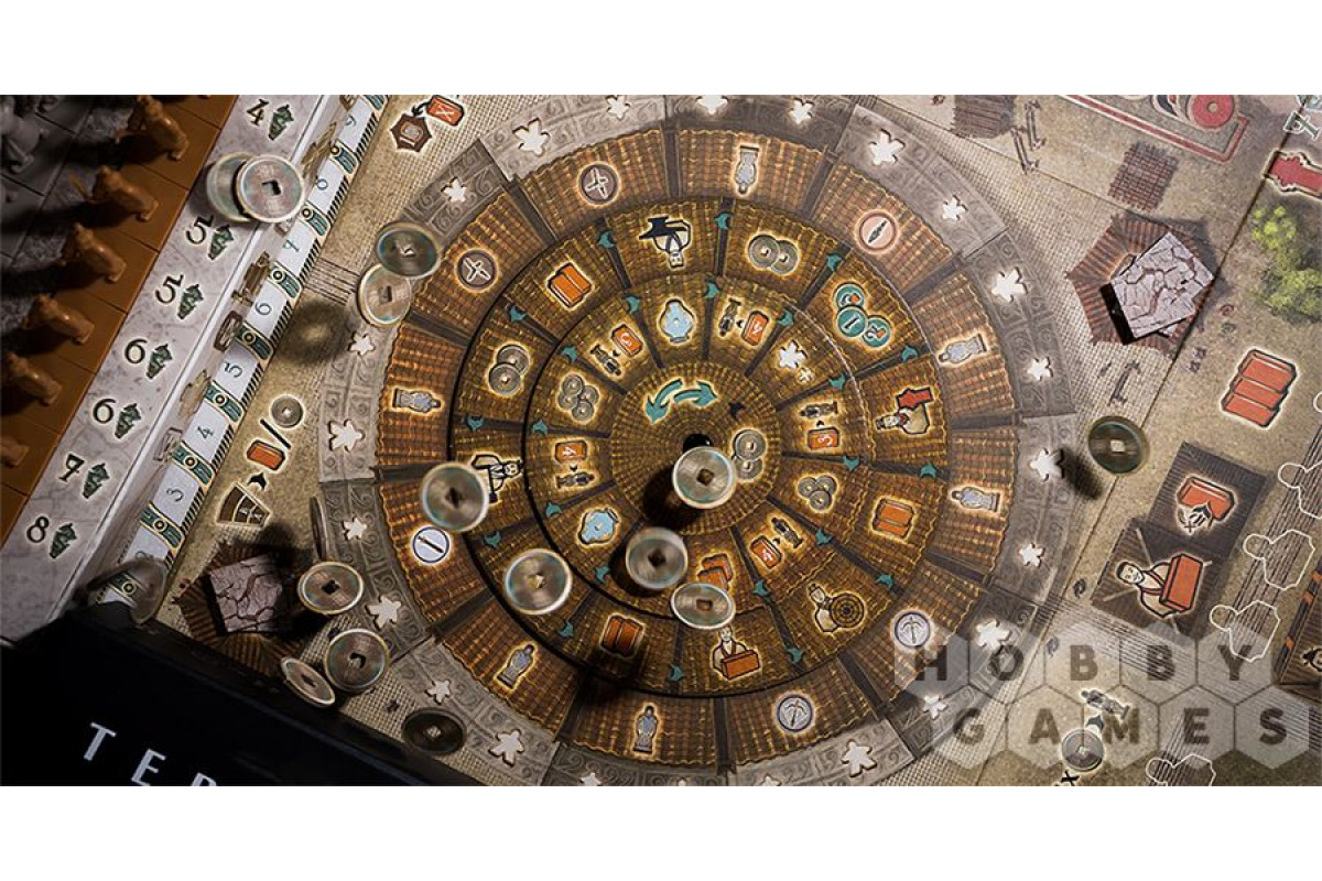 В свой ход распределяйте рабочую силу на колесе действий, чтобы выполнить задачи: создавайте статуи, активируйте оружие или получайте бонусы советников. Вращайте диски для новых возможностей, но действуйте обдуманно – каждый выбор влияет на ваших солдат. Размещайте терракотовый полк в мавзолее, формируя группы, и используйте особые умения фигурок. Пять раундов решат, чья армия достойна вечной славы!