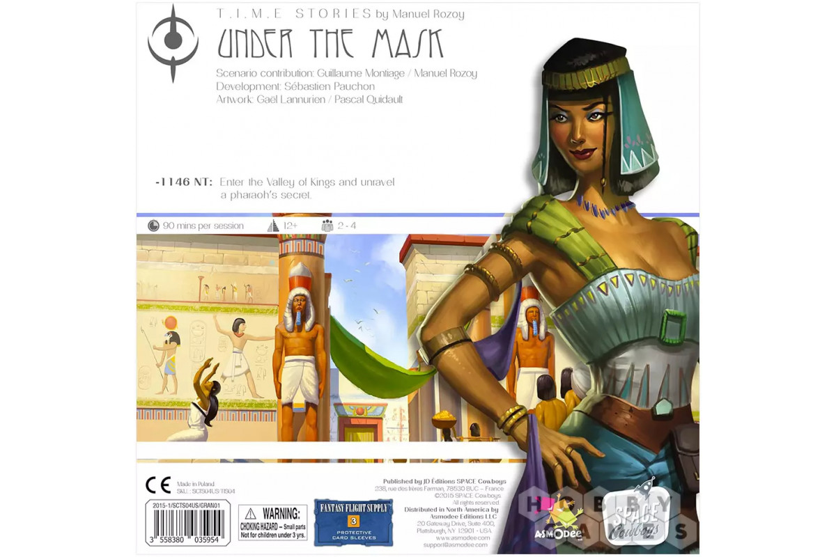Under the Mask – это третье дополнение к кооперативной настольной игре T.I.M.E Stories, где путешествия во времени и исследование альтернативных реальностей становятся вашей миссией. В этом приключении вы отправитесь в Древний Египет, чтобы раскрыть заговор, способный разрушить ход истории. Воплотитесь в роли агентов, используя хитрость, силу и убеждение, взаимодействуя с местными жителями, сражаясь с опасностями и разгадывая тайны. Успех зависит от вашей смекалки, умения договариваться и способности видеть то, что скрыто за песками времени.