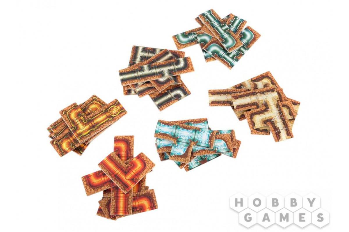 Все игроки в начале игры получают по 7 фрагментов труб. Теперь их задача – постараться как можно быстрее построить трубопровод, используя минимум пять из них. Все действуют одновременно – а значит, азарт и адреналин гарантированы с самого начала! Первый, кто завершил свой проект, запускает таймер: теперь у остальных всего 30 секунд на то, чтобы закончить собственные творения. При проверке трубопровод должен соединять начало и конец без разрывов и ошибок, обходить препятствия и не выходить за границы поля. Тот, кто построил правильный трубопровод первым, получает максимальные очки, остальные – меньше, а ошибившиеся – штраф. Игра продолжается до достижения оговорённого количества очков.