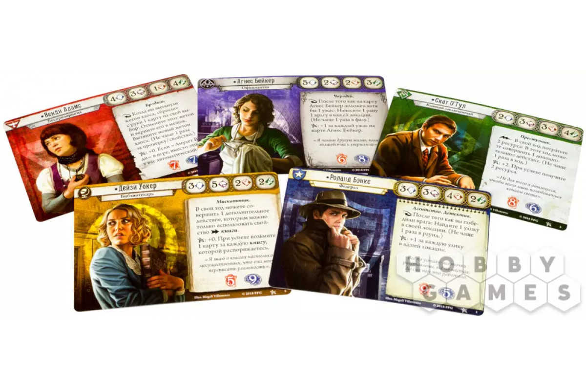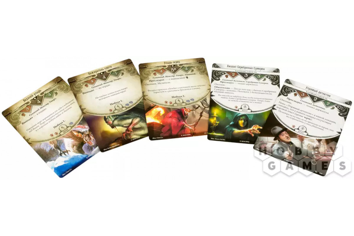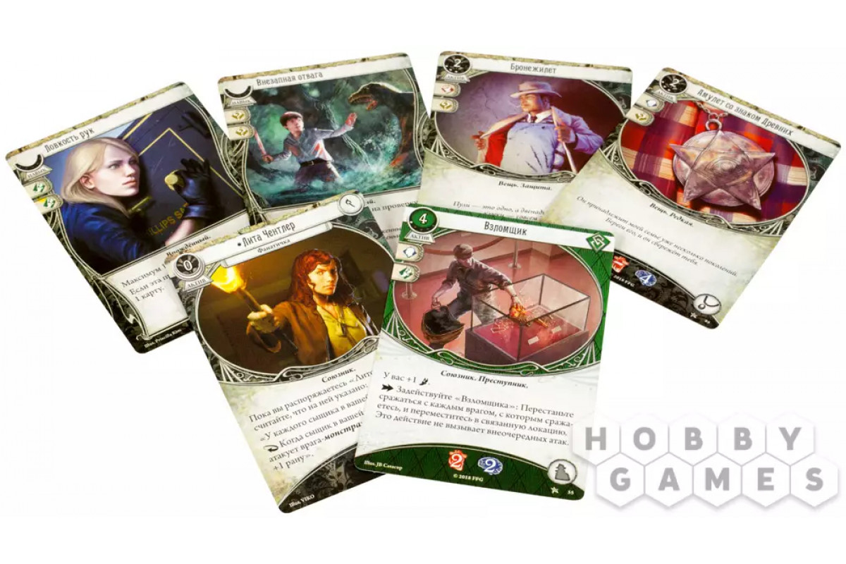 Игроки управляют действиями персонажей посредством своей колоды сыщика. Сценарии ведут кампании, предлагая интереснейшее приключение.