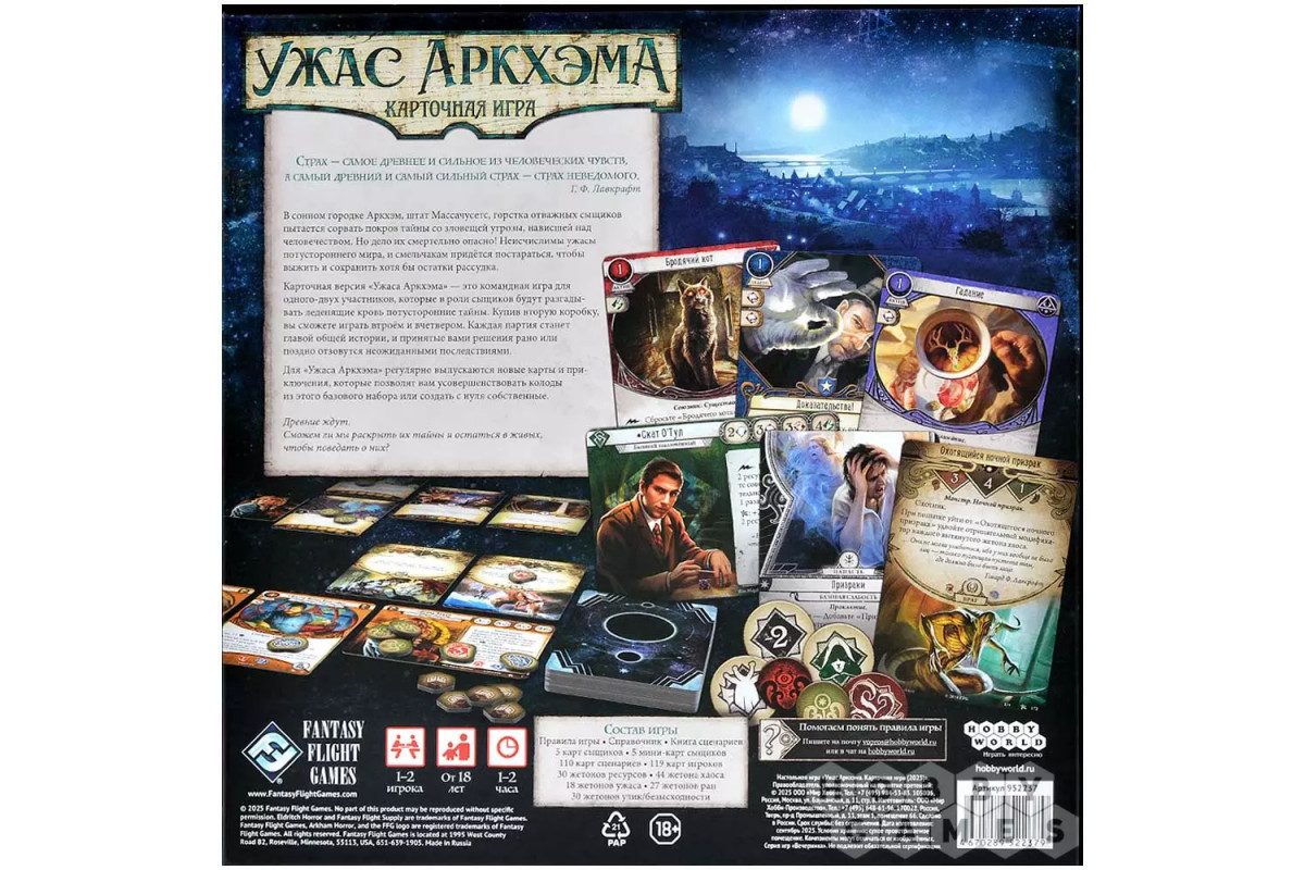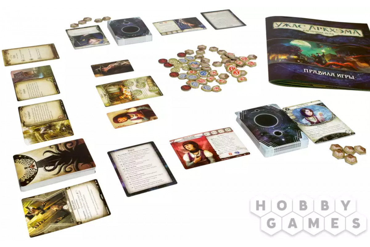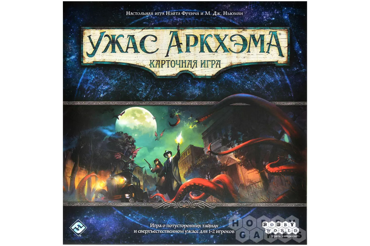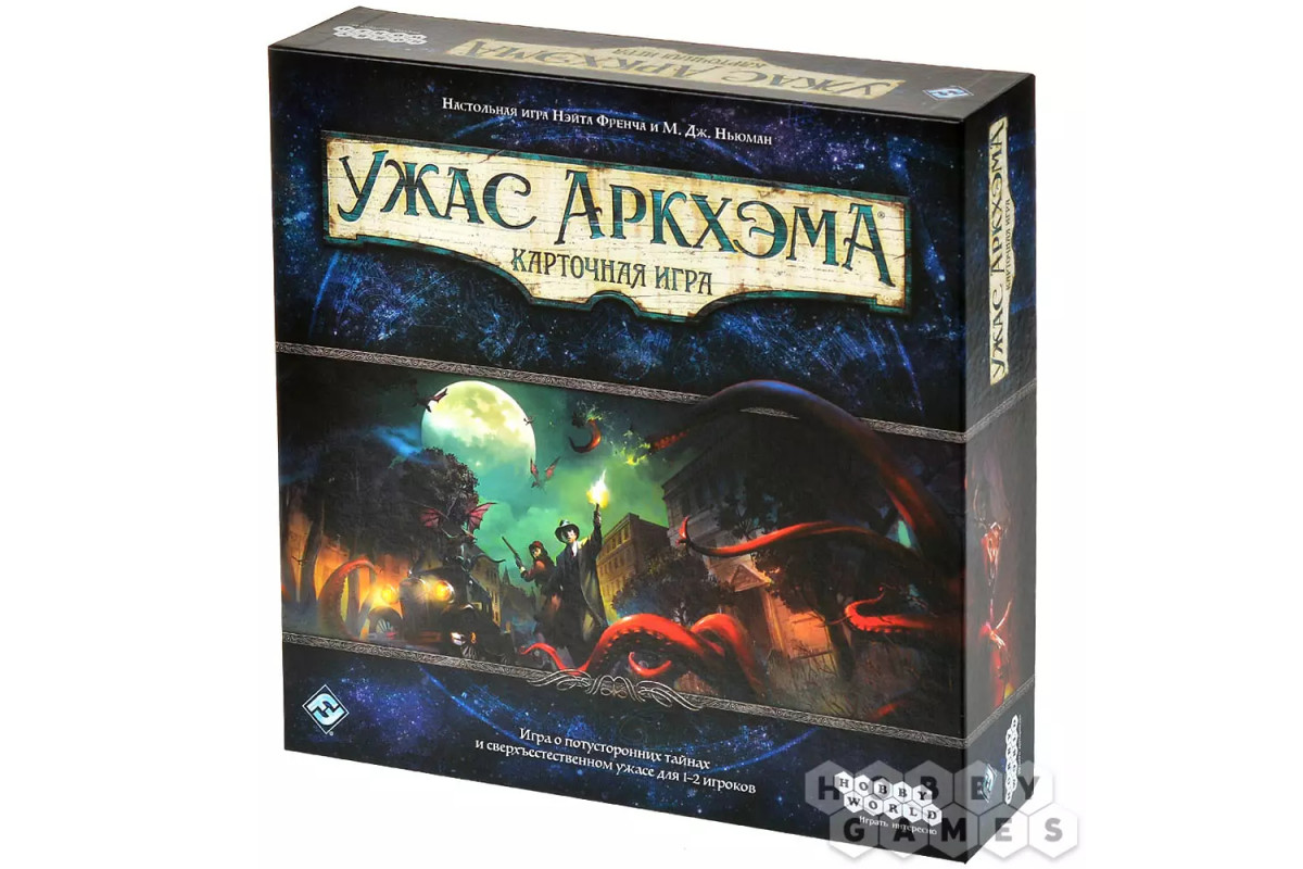 "Ужас Аркхэма. Карточная игра" – это кооперативная Живая Карточная Игра в сеттинге мифов Лавкрафта, в которой 1-2 сыщика (а со вторым набором – 3-4) совместно познакомятся с миром оккультизма, древних богов и тайн, параллельно борясь и с внутренними демонами из своего прошлого.