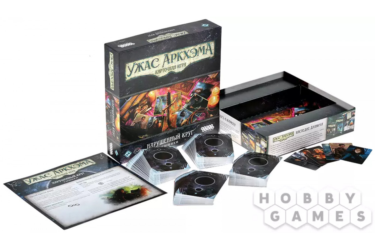 Коробка "Нарушенный круг. Сыщики" включает в себя 6 сыщиков и все карты игроков, которые ранее выпускались в составе отдельных наборов цикла "Нарушенный круг". Попробуйте разгадать сверхъестественные тайны вместе с частным детективом по имени Джо Даймонд. Со спортсменкой Ритой Янг вы будете оказываться на шаг впереди любой проблемы. Но если проблемы всё-таки одолеют, решить их помогут деньги, а с деньгами поможет миллионер Престон Фэрмонт. Постарайтесь не потерять рассудок и помогите сохранить его вашим товарищам вместе с психологом Кэролиной Ферн. Свой человек в рядах культистов – отступница Диана Стэнли – поможет вам сорвать ужасные ритуалы. А вместе с певицей Мари Ламбо изучите собственное происхождение. Что бы в Аркхэме ни происходило, в центре событий всегда окажутся смелые сыщики. Ваша задача, как и всегда, не дать им сойти с ума.