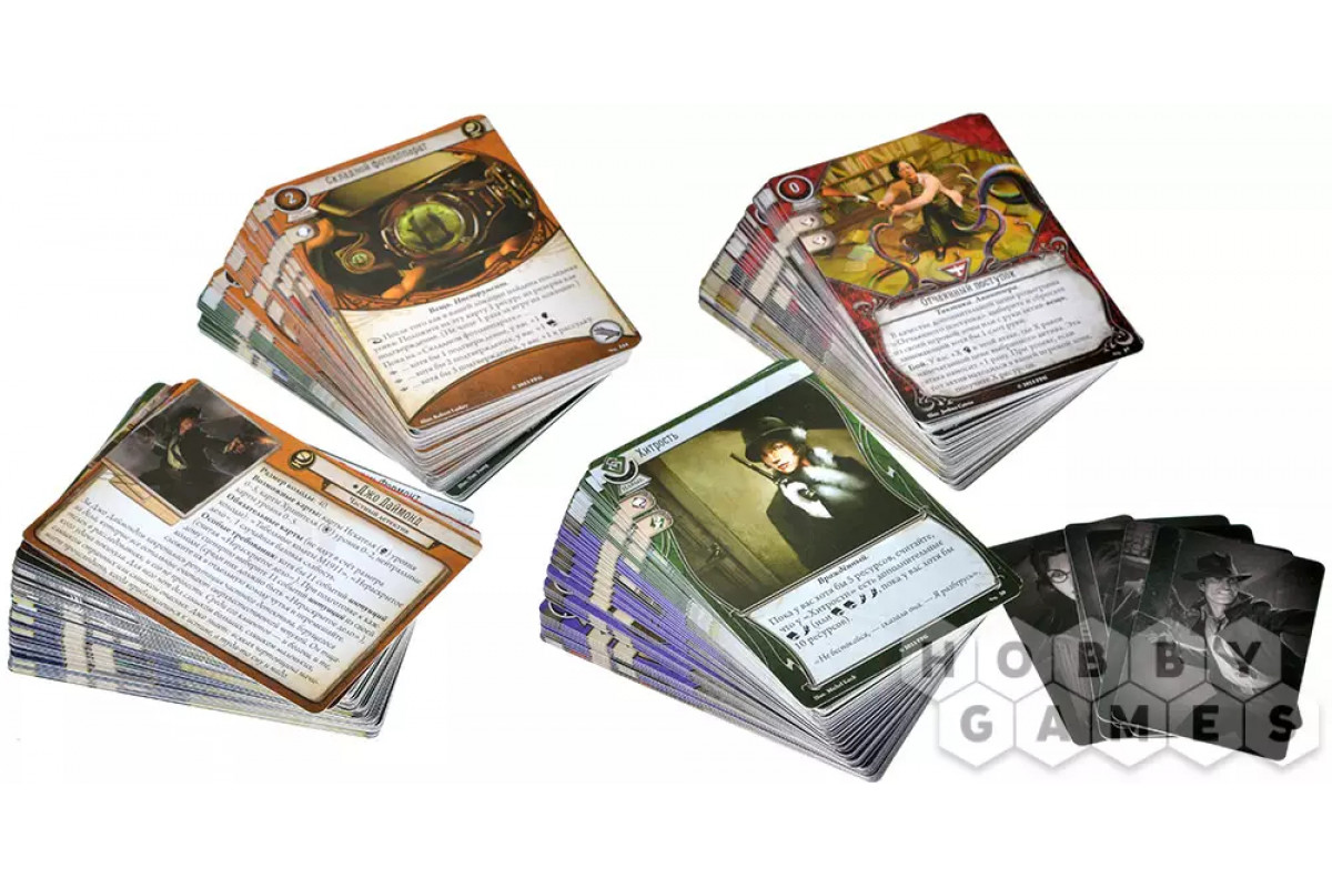 "Ужас Аркхэма. Карточная игра" – это кооперативная Живая Карточная Игра в сеттинге мифов Лавкрафта, в которой 1-2 сыщика (а со вторым набором – 3-4) совместно познакомятся с миром оккультизма, древних богов и тайн, параллельно борясь и с внутренними демонами из своего прошлого.