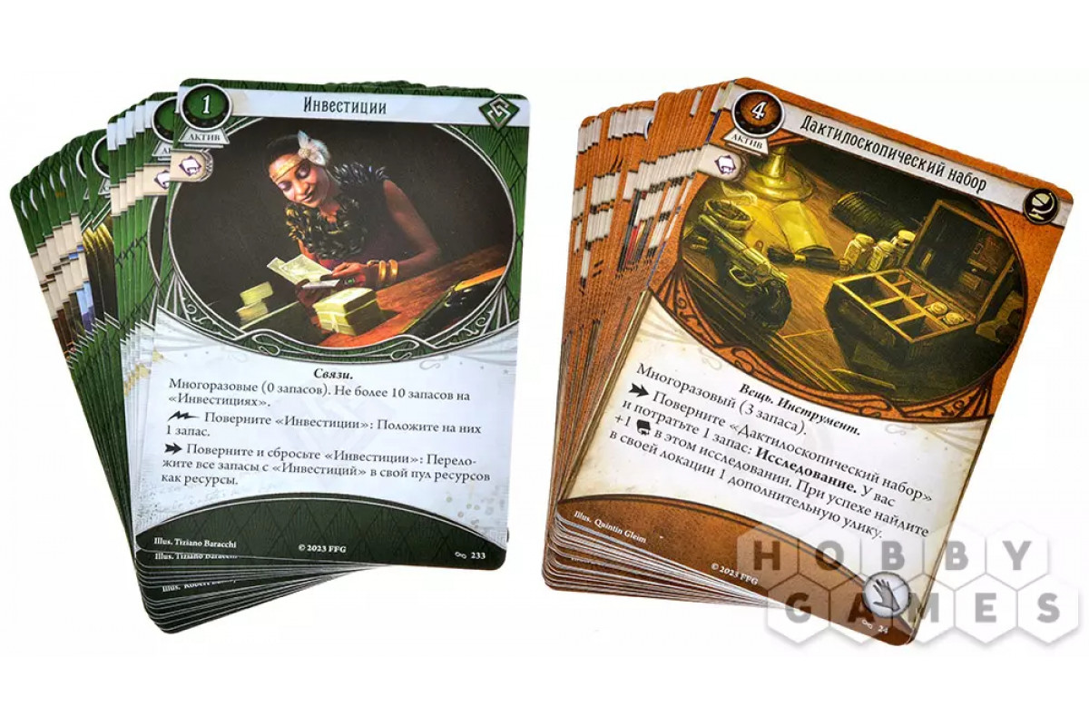 Игроки управляют действиями персонажей посредством своей колоды сыщика. Сценарии ведут кампании, предлагая интереснейшее приключение.