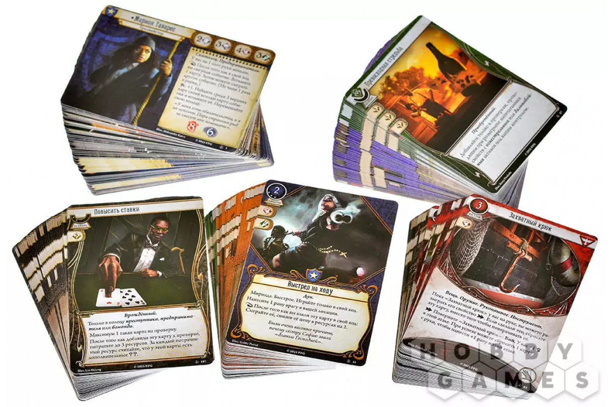 Игроки управляют действиями персонажей посредством своей колоды сыщика. Сценарии ведут кампании, предлагая интереснейшее приключение.