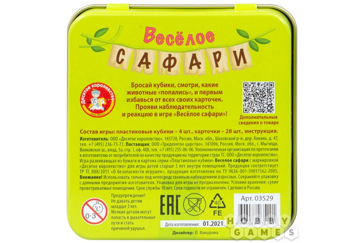 Как много животных знает ваш ребёнок? Настольной игра "Весёлое Сафари" не только покажет ему, как выглядят обитатели жаркой саванны, но и поможет развить наблюдательность, внимание и скорость реакции. Да и просто играть – это весело!