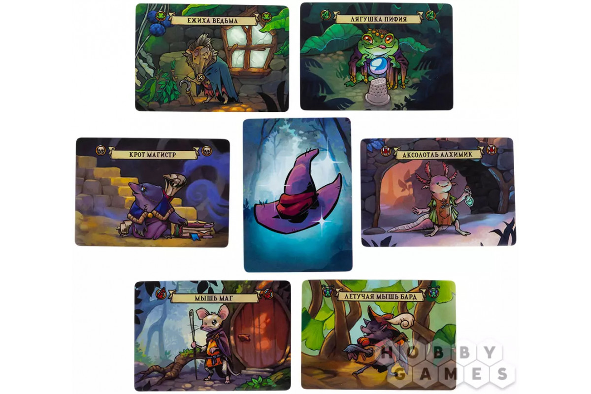 "Волшебники лесных чащоб" – динамичная соревновательная настолка, в которой вы примеряете роли лесных чародеев, стремящихся доказать своё мастерство. В вашем распоряжении – колода карт с уникальными существами, каждое из которых обладает силой и особыми эффектами. В каждом раунде вы будете призывать претендента – существо, которое сразится за звание чемпиона, а затем усиливать его с помощью дополнительных карт. Фазы поиска, призыва и усиления создают напряжённую и стратегическую борьбу, где важно не только набрать силу, но и перехитрить соперников. Игра предлагает множество вариантов развития событий благодаря разнообразию существ и их эффектов, а также отлично масштабируется: от двух до шести игроков в одной коробке и до двенадцати – при объединении двух наборов.