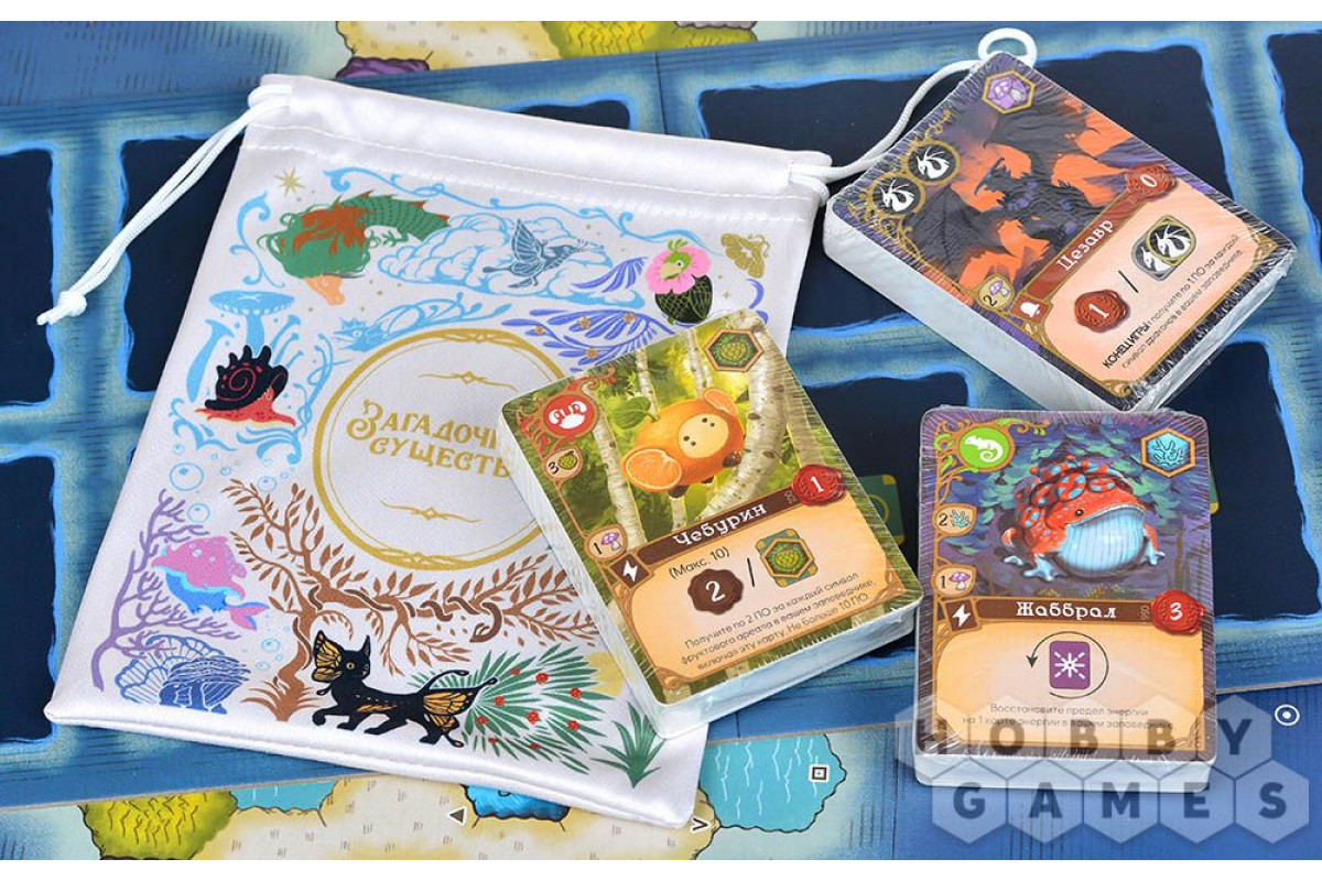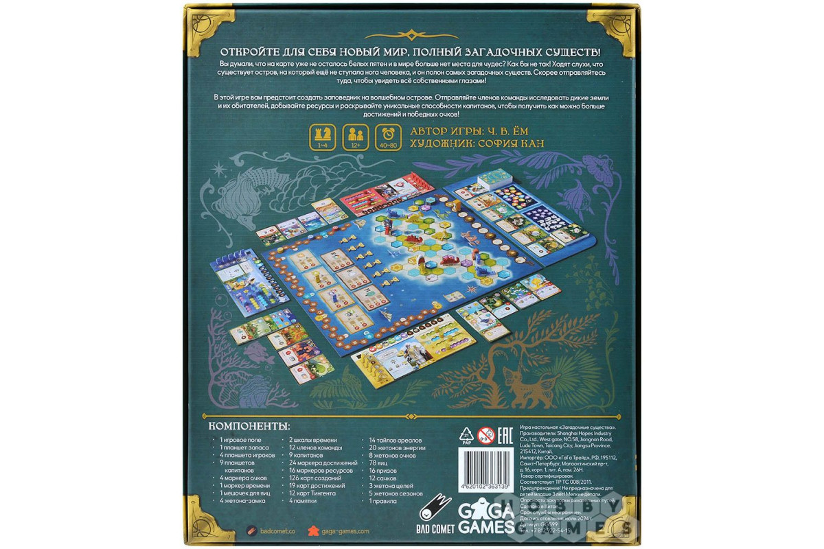 В "Загадочных существах" начинается настоящая гонка за редчайшими видами! Отряд исследователей под предводительством капитана отправляется в экспедицию: исследовать земли, приручать невероятных существ и собирать ресурсы. Чем больше экзотических обитателей вы поселите, тем мощнее станет ваш заповедник – а вместе с ним и шансы на победу! Игра сочетает простые правила с глубокой тактикой: эффектные комбинации карт запускают каскад действий, превращая один ход в блестящий стратегический манёвр. Но осторожнее – здесь всё меняется в мгновение ока!