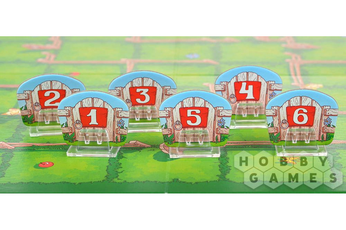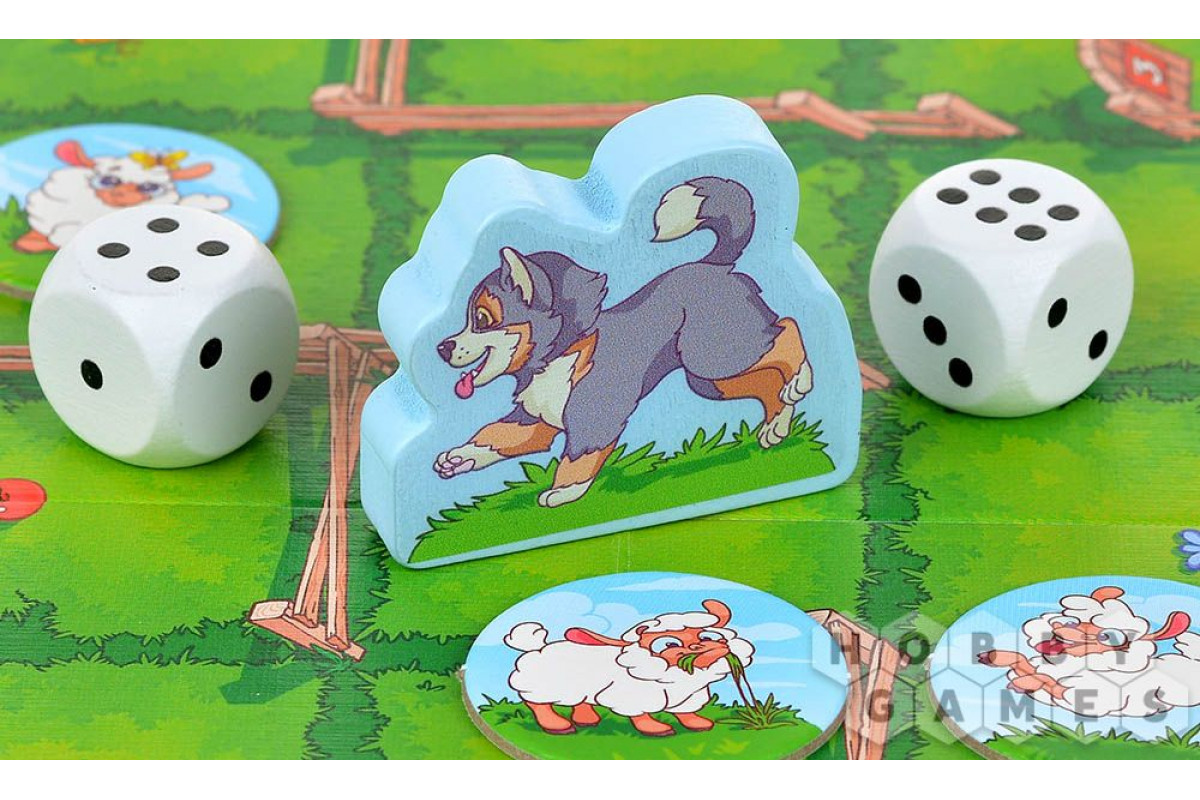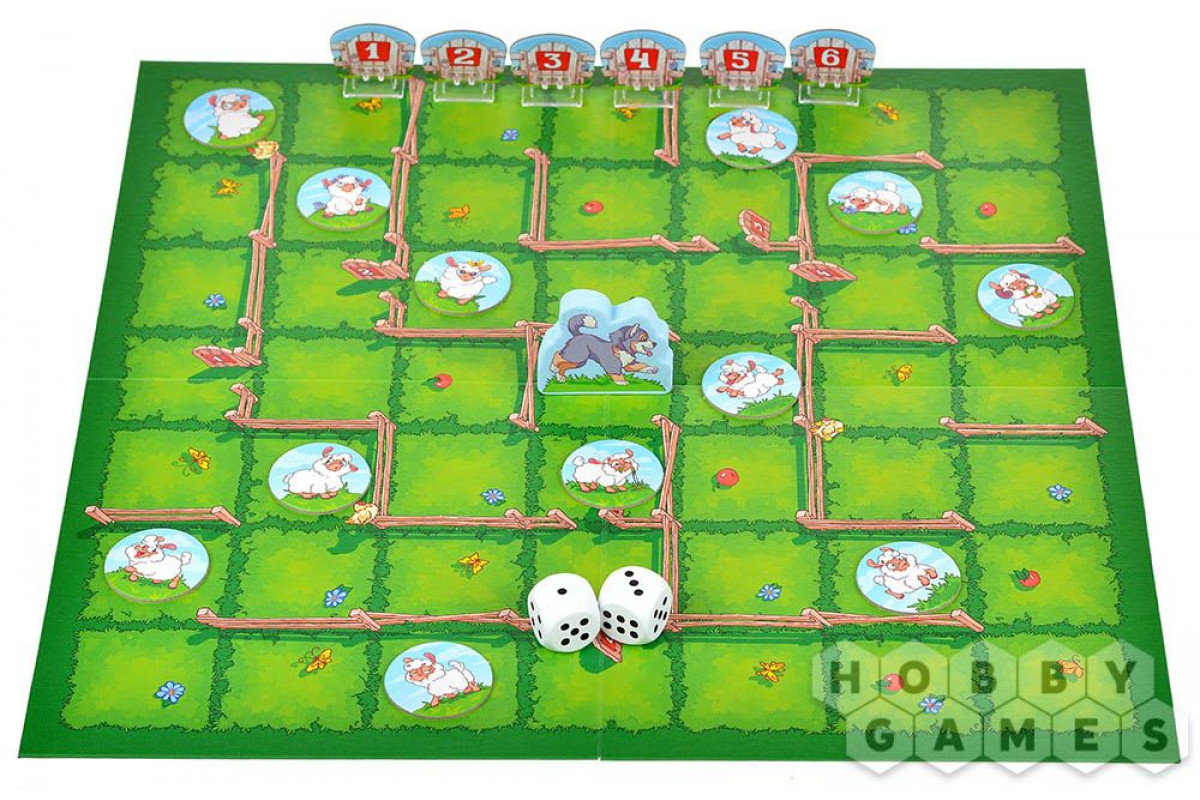 Ваша задача – направить собачку так, чтобы она догнала овечек. Если фигурка остановится на клетке с жетоном овечки, этот жетон вы забираете и приближаете общую победу. Но будьте внимательны: если на кубиках выпадут одинаковые числа, вы не двигаетесь, а меняете положение калиток с тем же числом – закрываете или открываете проходы, которые могут помочь или помешать в следующий ход. Так что каждое решение – это маленькая стратегия, а командная работа и устный счёт помогают выбрать лучший путь!