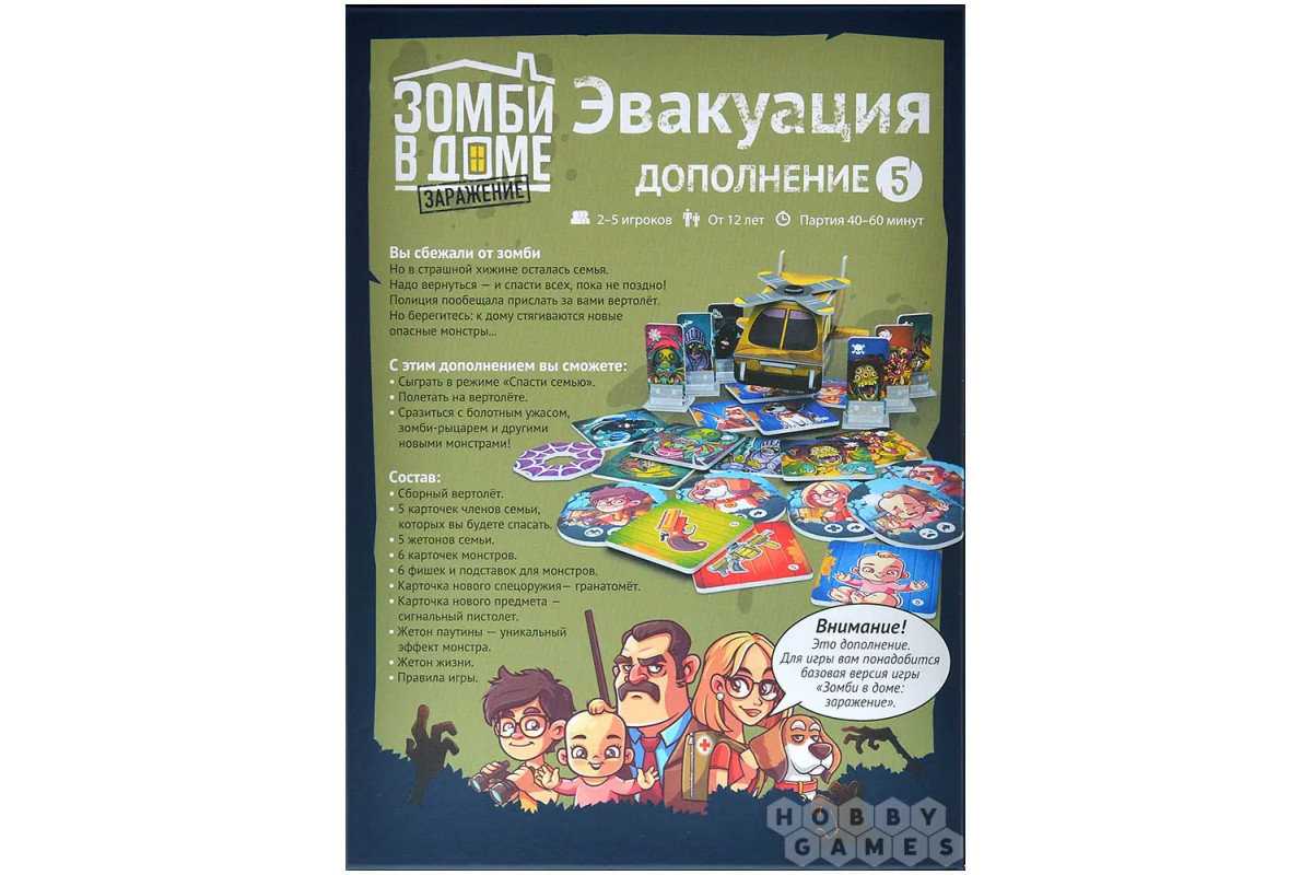"Зомби в доме: Заражение" – это обновлённое издание популярной настольной игры с отредактированными правилами и дополнительными компонентами. Трёхмерное окружение и фигурки персонажей порадуют требовательных к качеству компонентов игроков, а дружеские или семейные компании – упор на командное взаимодействие и современную красочную рисовку.