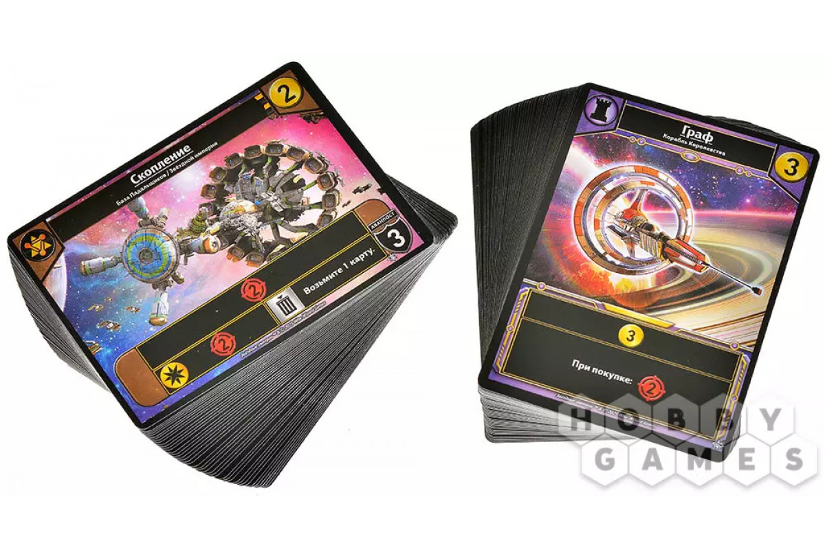 Продолжайте играть до тех пор, пока не будут выполнены условия достижения победы. Так шаг за шагом вы проходите 12 сценариев, формируя уникальную личную торговую колоду и сближаясь с финальной битвой за галактику.