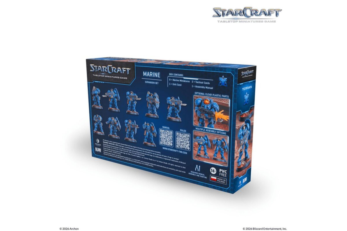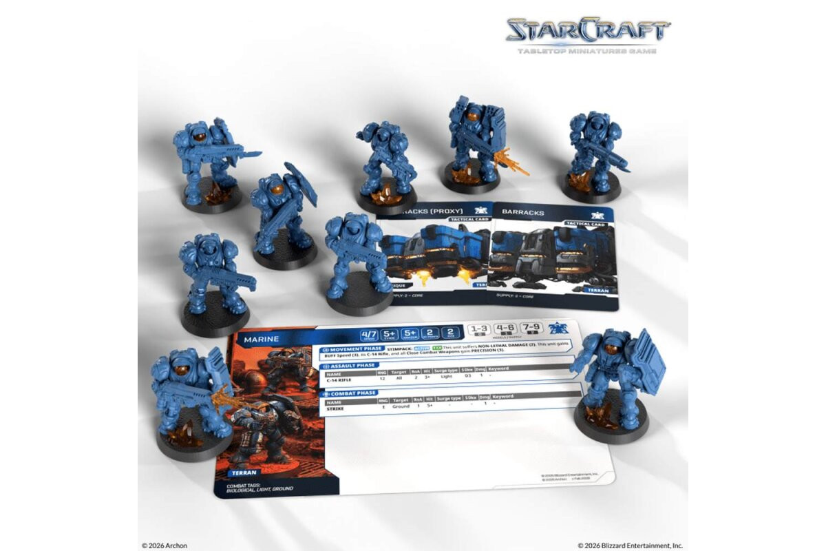 The Marine forms the backbone of many Terran forces in the sector. Equipped with a CMC powered armor suit and the trusty C-14 Rifle, it can be deployed across a wide range of hostile environments.In larger squads, this unit truly shines and is especially effective at clearing out hostiles and keeping pressure on the battlefield.Contents: 9x Marines (miniatures) 9x Bases (32mm) 3x Cards (cards) 1x Assembly Manual (manual)Note: These miniatures are made of plastic, is unpainted, and require assembly. Caution! Contains small parts, not suitable for children under 36 months of age.