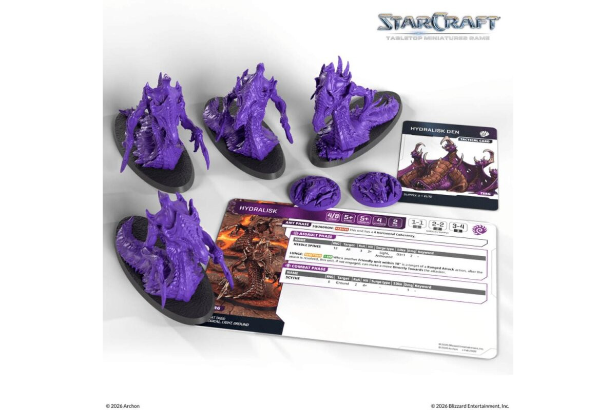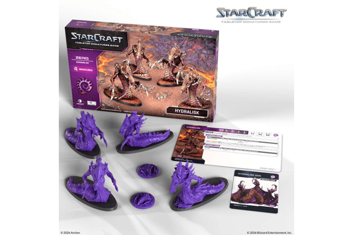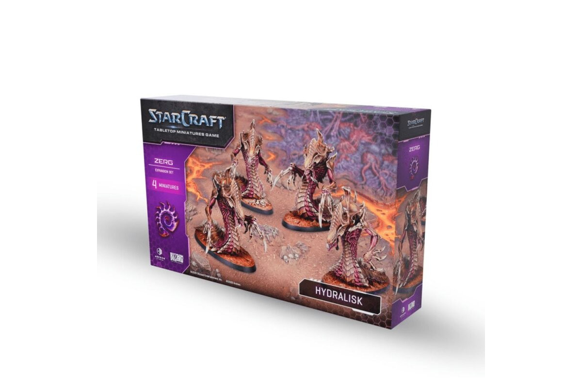 The StarCraft® Hydralisk brings one of the most iconic Zerg units to the table as a ready-to-use addition. With its distinctive silhouette and spine-volley theme, it’s ideal for expanding your Zerg force with fast, aggressive firepower.The set includes multiple Hydralisks to field as a unit. It also comes with matching bases and cards, allowing the Hydralisk to be used right away in scenarios and battles.Contents: 4x Hydralisk (miniatures) 4x Bases (40mm x 100mm) 1x Hydralisk Unit Card (card) 1x Tactical Card (card) 1x Assembly Manual (manual)Note: These miniatures are unpainted and require assembly. Caution! Contains small parts, not suitable for children under 36 months of age.