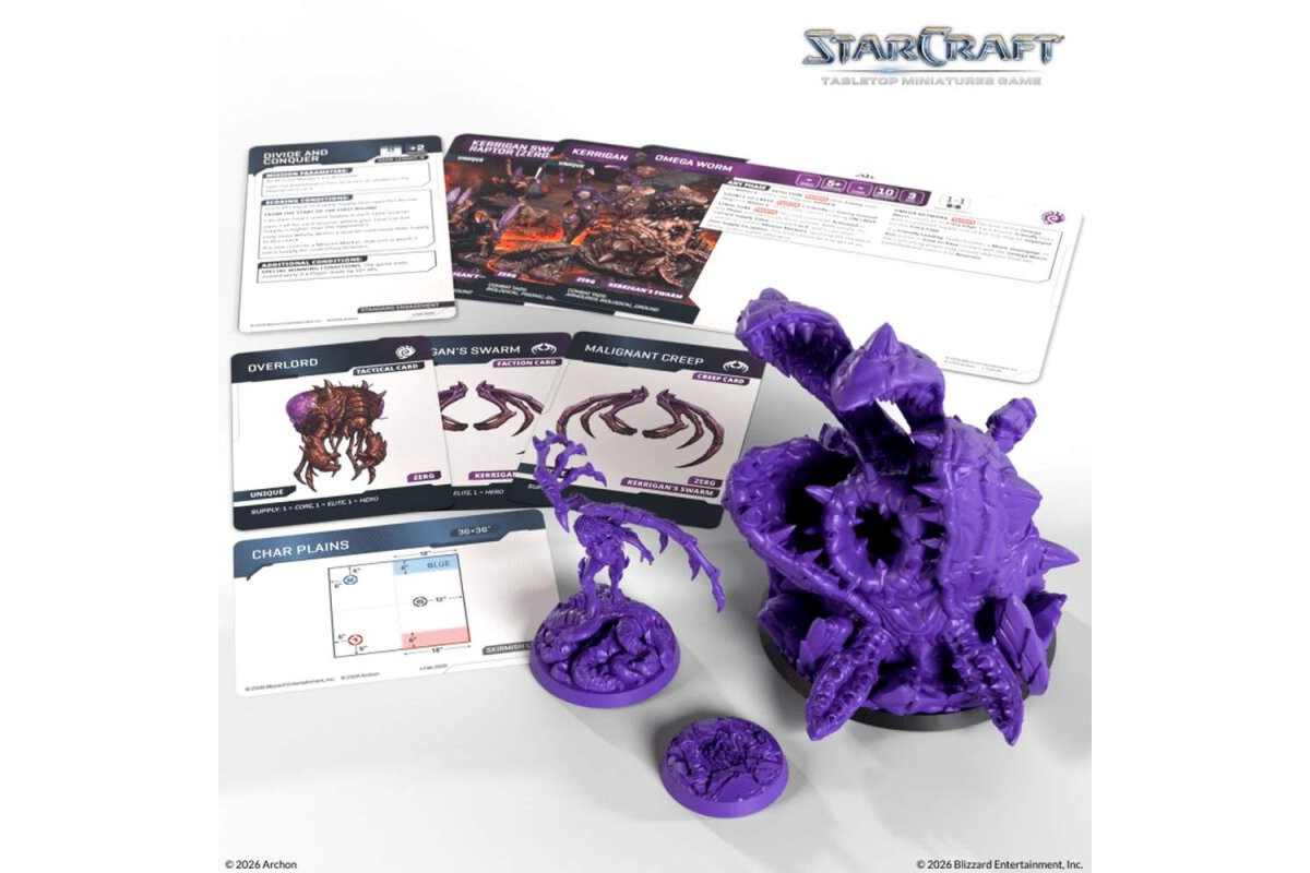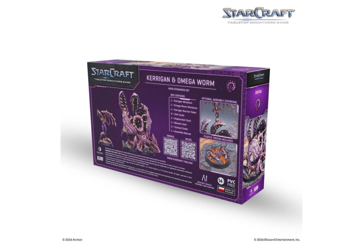 The Queen of Blades has returned, and the Koprulu sector is in flames once again. With this set, you bring Kerrigan and her Omega Worm to the tabletop as a striking physical presence.The kit lets you play Kerrigan’s Swarm as a new faction and includes matching game materials to field her right in the action.Contents: 1x Kerrigan (miniature) 1x Omega Worm (miniature) 1x Base (80mm) 8x Cards (cards) 1x Assembly Manual (assembly manual)Note: These miniatures are unpainted and require assembly. Caution! Contains small parts, not suitable for children under 36 months of age.