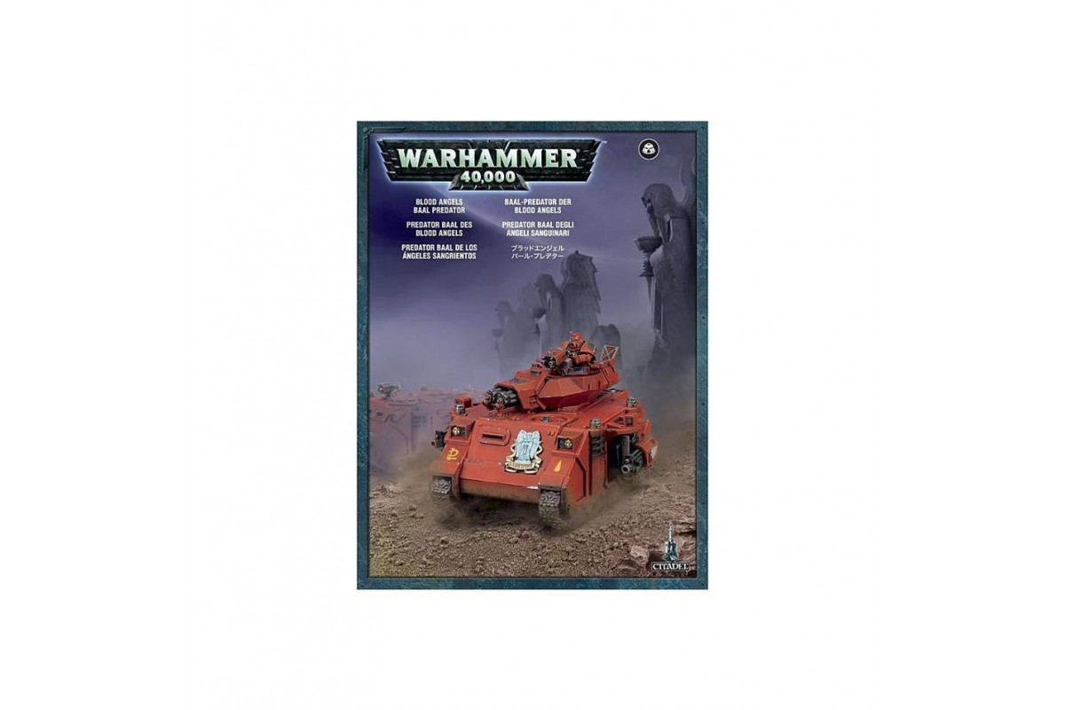 This box set contains one multi-part plastic Blood Angels Baal Predator. This 110-piece set includes: a twin-linked assault cannon, a flamestorm cannon, a set of heavy flamers, a set of heavy bolters and smoke launchers. Also included are a host of Blood Angel icons that allow you to further detail your miniature, and a choice of a bare head or helmeted head for the tank commander.