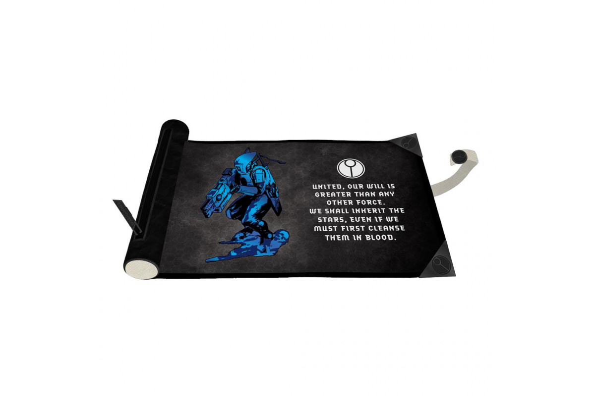 In the grim darkness of the far future there is only war, so prepare for battle with tabletop accessories for Warhammer 40,000! This T'au Empire Dice Scroll offers premium dice storage and a convenient built-in rolling mat, so you can store and roll all the dice you need to command your armies in style. Made with a textured leatherette exterior and soft microfiber interior, you can safely store around 20+ of your favorite RPG dice inside the zippered compartment, decorated with metal faction emblems. Unfurl the rolling mat to find a protective surface that’s perfect for tossing dice while keeping your tabletop safe from scuffs, featuring the Adeptus Astartes symbol, a gold foil Space Marine, and a proclamation from the Emperor of Mankind. When finished, simply roll it back up around the zippered compartment and secure it shut with the strap and snap button closure to create the look of a scroll from the Dark Age of Technology.